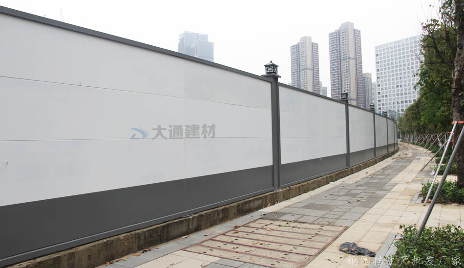 東莞樟木頭道路施工圍擋工程選用了深圳大通建材生產批發的符合東莞施工市政標準的鋼結構烤漆圍擋A類
