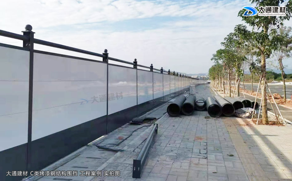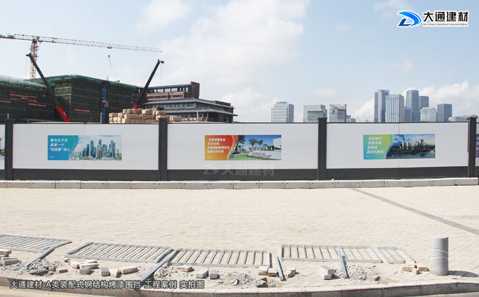 題外話,城市建設的工地圍擋確實很重要,工地圍擋的安全穩固性影響著施工工地及周邊人員的安全,工地圍擋美觀性則影響著城市的市容市貌。而深圳市大通建材有限公司所處的城市深圳,深圳的市政在幾年前就已經對工地圍擋提出了新標準,淘汰了工地施工及道路采用的普通的鐵皮圍擋、夾心泡沫圍擋等易壞、抗風性差的圍擋,采用更美觀環保、安全穩固的符合市政標準的PVC圍擋、裝配式鋼結構圍擋。