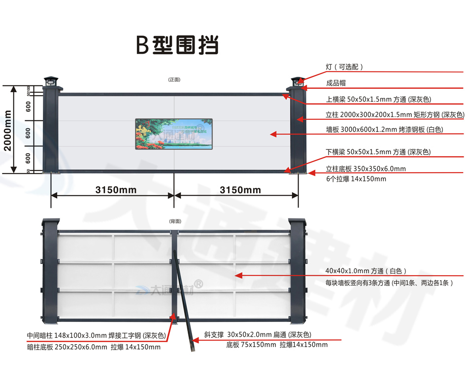 B型圍擋-2米高新型鋼圍擋-B型圍擋全龍骨款(標(biāo)準(zhǔn)款)